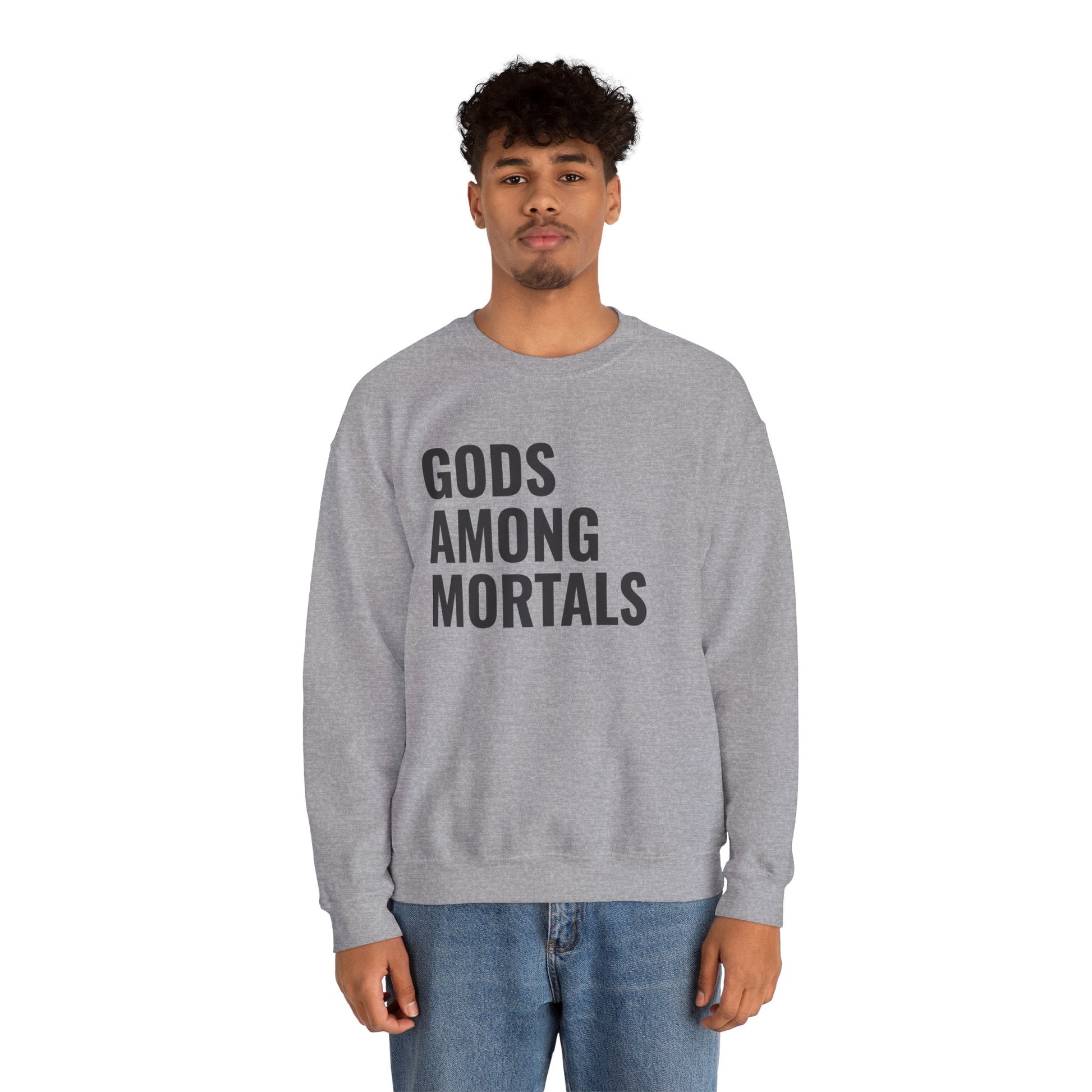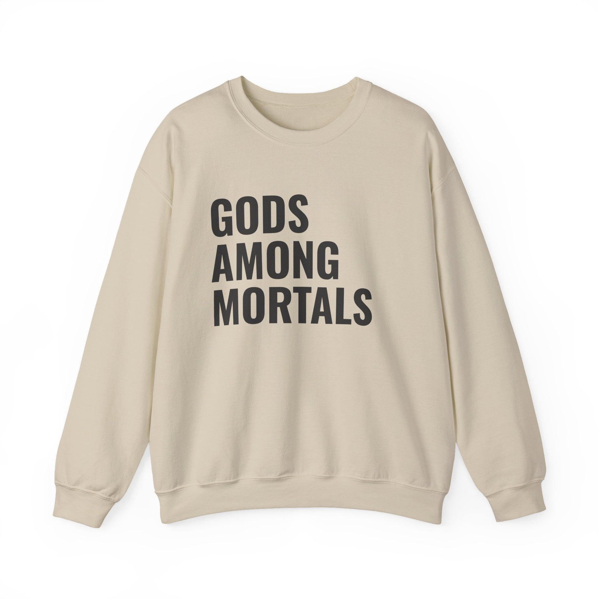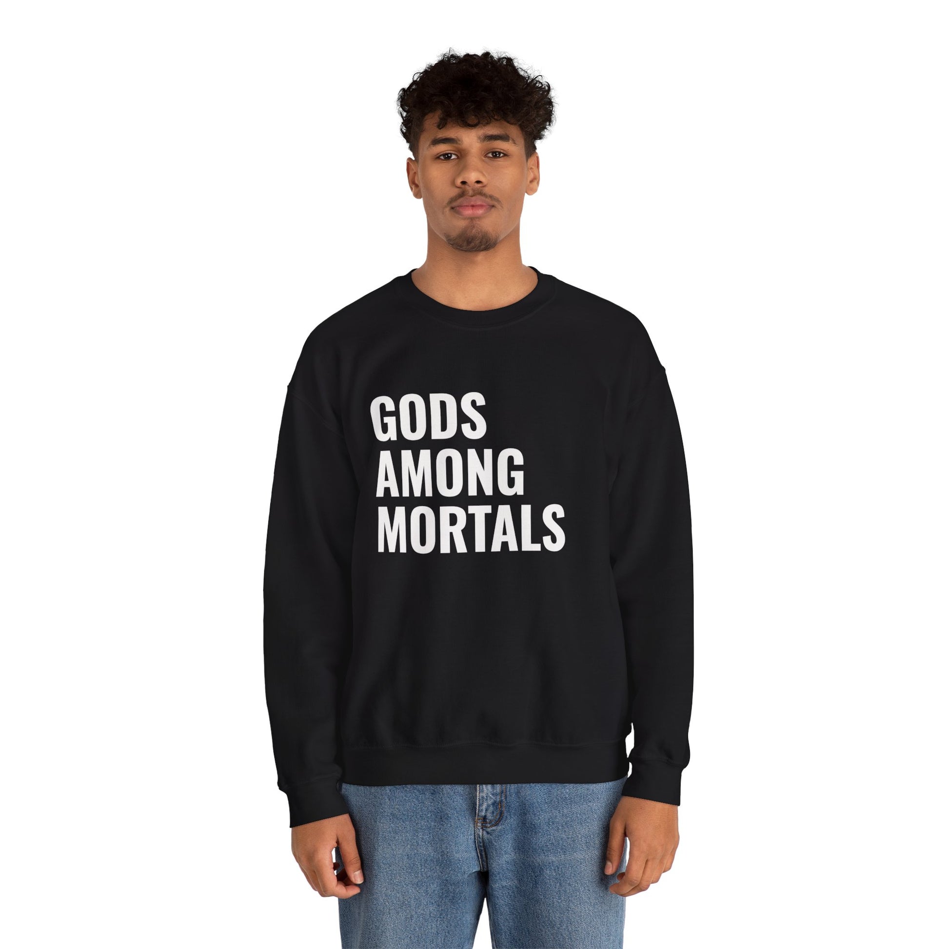 Gods Among Mortals Crewneck Sweatshirt – Bold Text Graphic Pullover