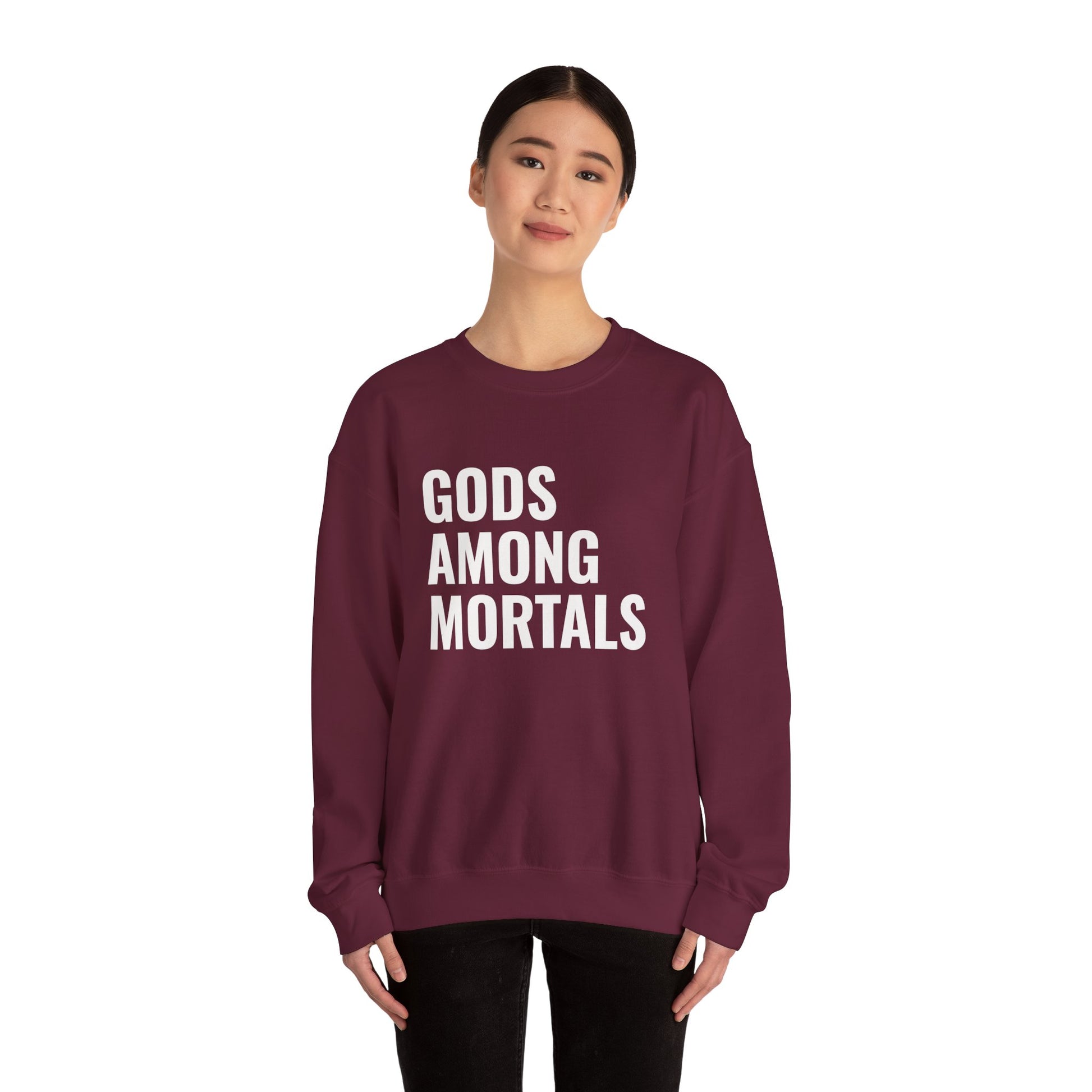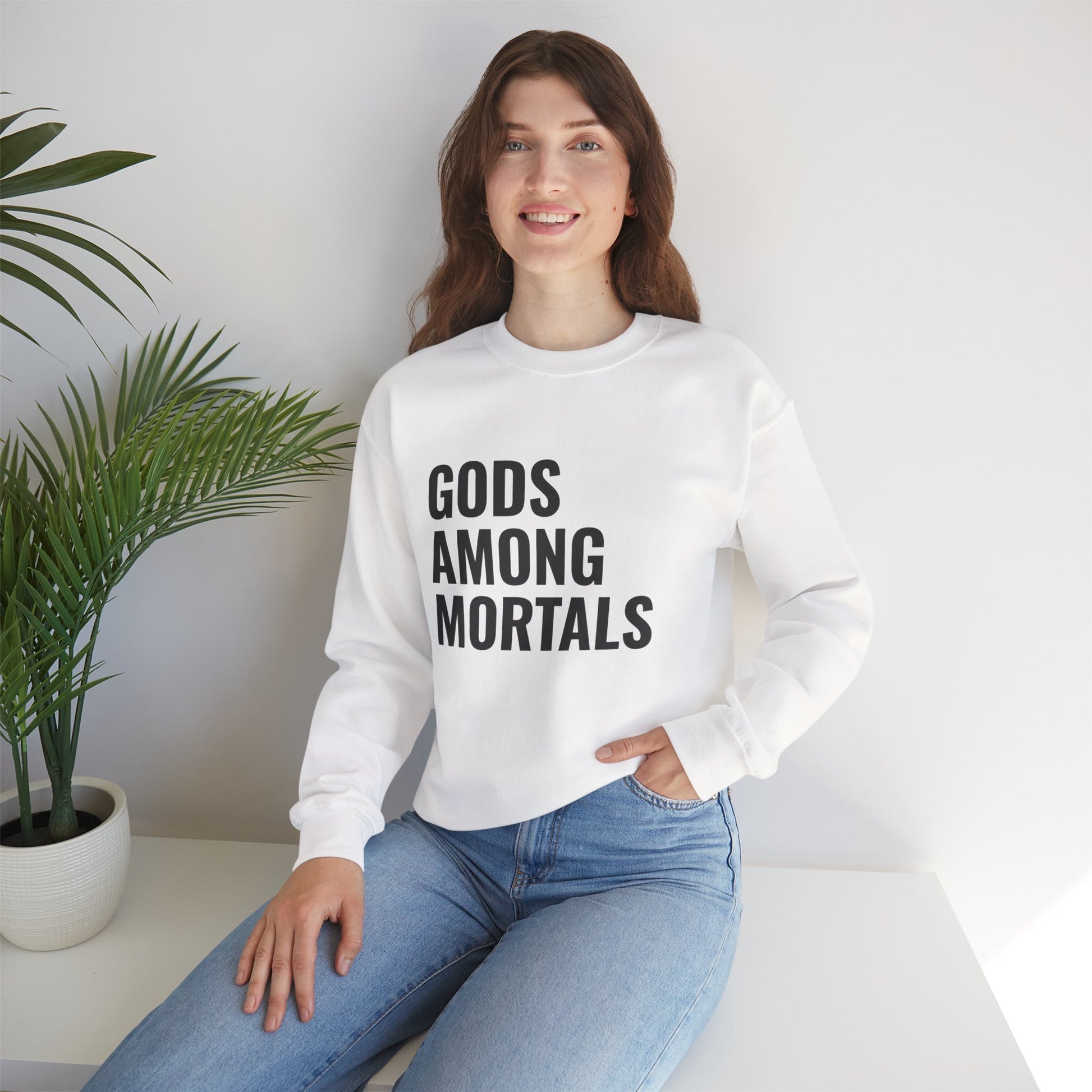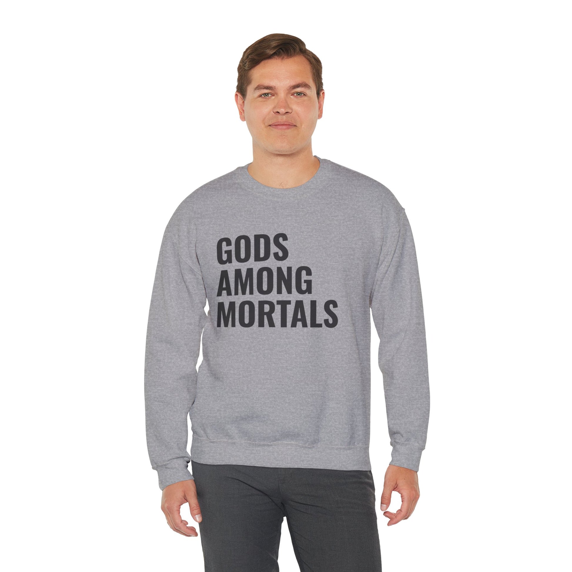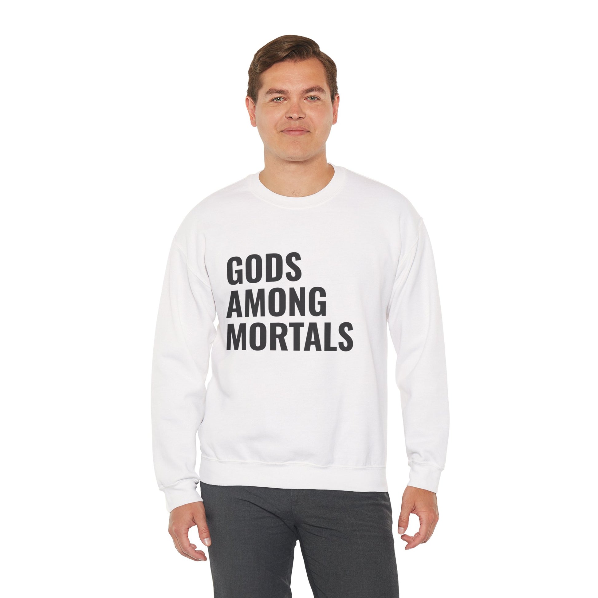 Gods Among Mortals Crewneck Sweatshirt – Bold Text Graphic Pullover